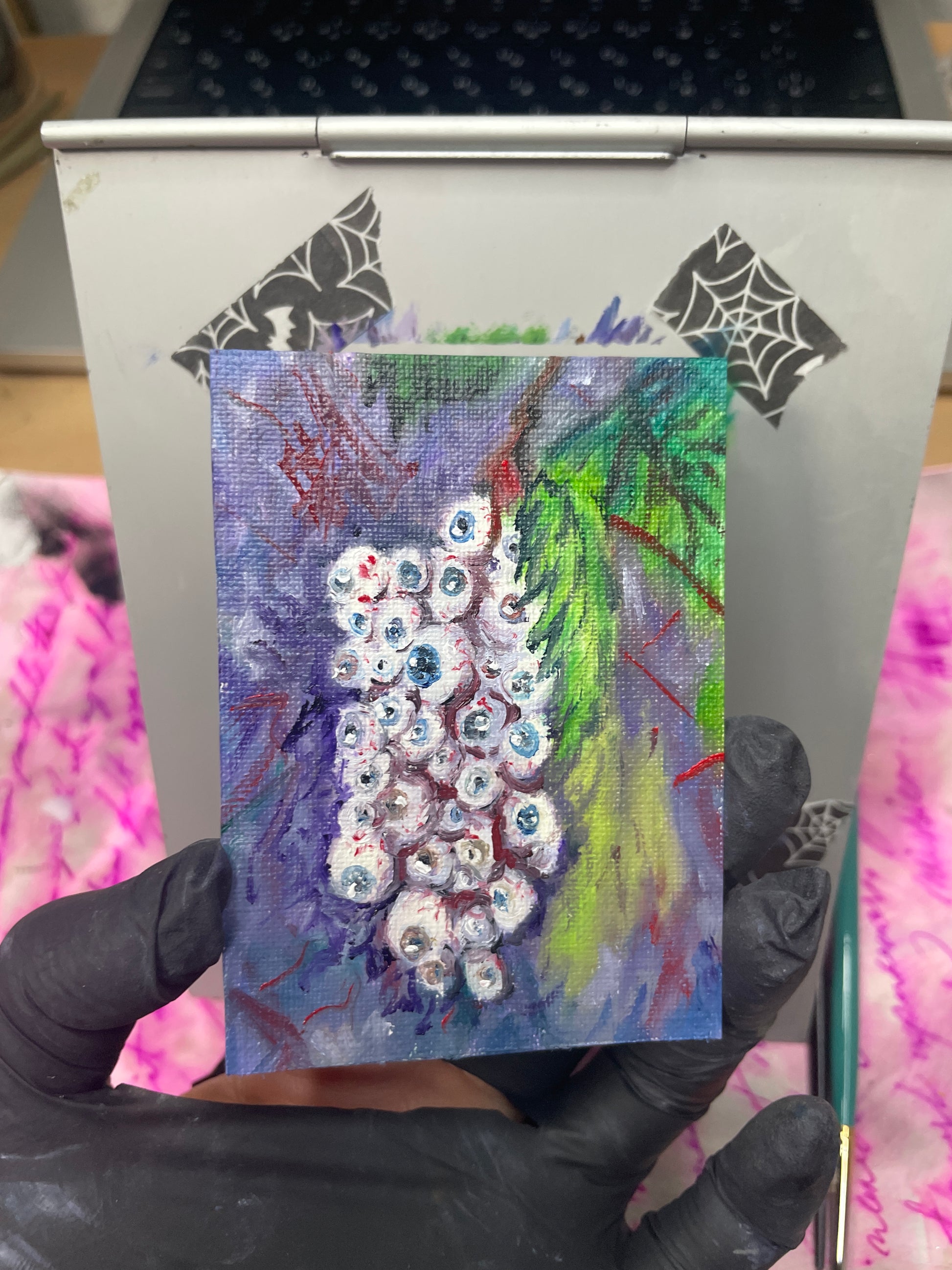 This tiny creepy painting is looking forward to seeing you while you go on with your life at home.